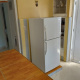 Cocina equipada con cafetera, tazas, olla reina, arrocera, microondas y refrigerador